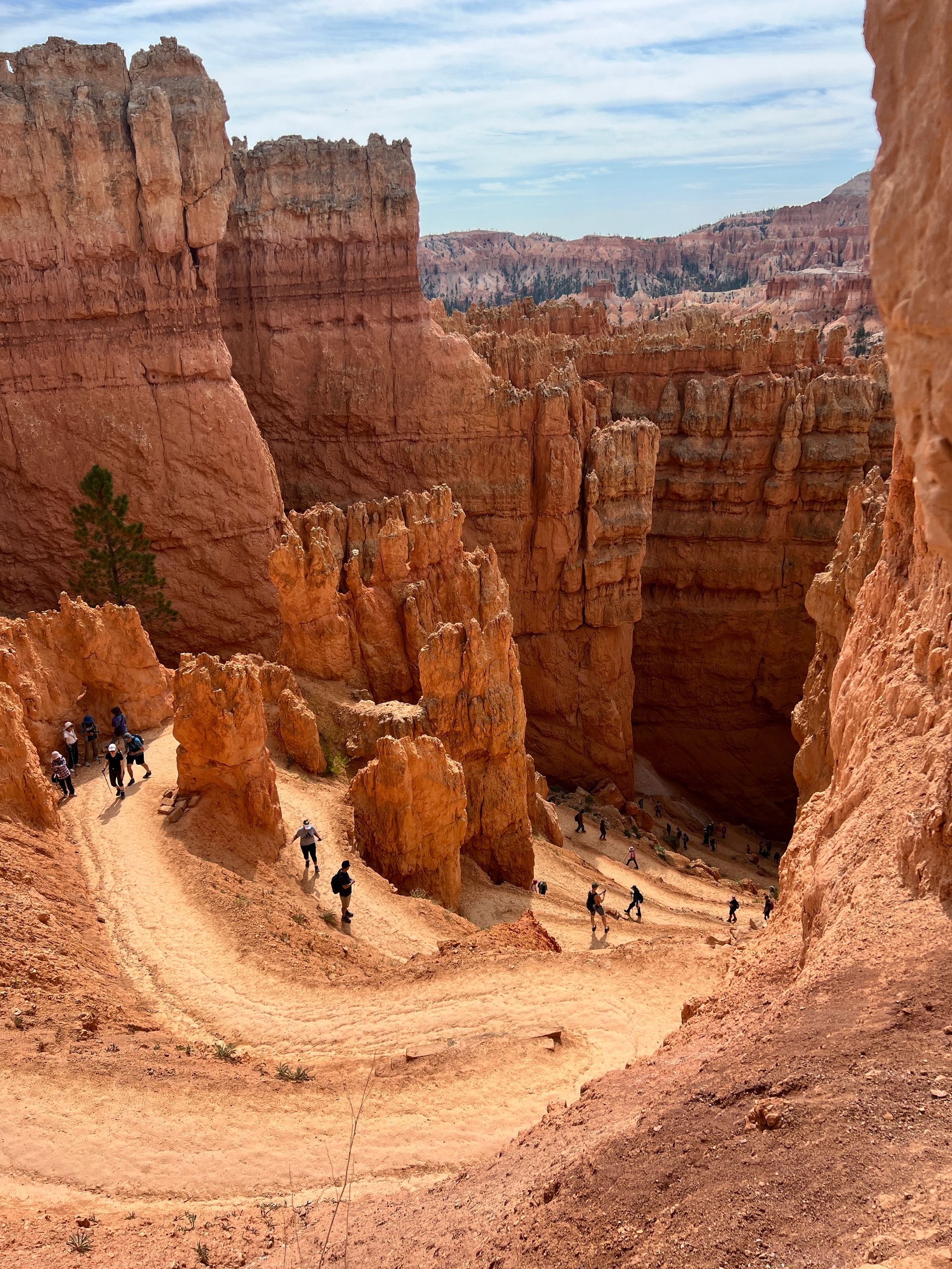 Later that day, we tackled the Queen's Garden and Navajo Loop with joy, a three-mile circuit that drops you from the rim right into the amphitheater itself. Deep in the valley, Douglas firs rise improbably between narrow cliff walls, their roots finding ingenious ways to thrive in places where little else grows. These trails are short but unforgettable, like walking through a gallery where every turn reveals another reason to marvel at this world we are blessed to explore.