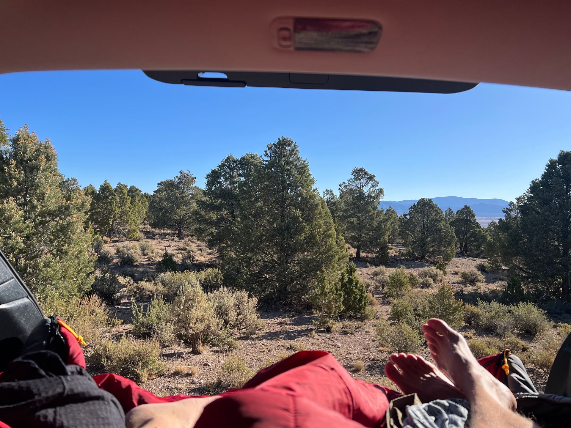Gear Check: Our 2017 Subaru Outback car camping setup was put to the test. Overnight temperatures dropped to 35°F while Reno reached 87°F the same day, a swing of more than fifty degrees in a six-hour drive. Our Kelty Tru.Comfort Doublewide Sleeping Bag and Luno Car Window Screens kept us comfortable, but cooking above 9,000 feet was a new challenge. Altitude changes more than breathing.