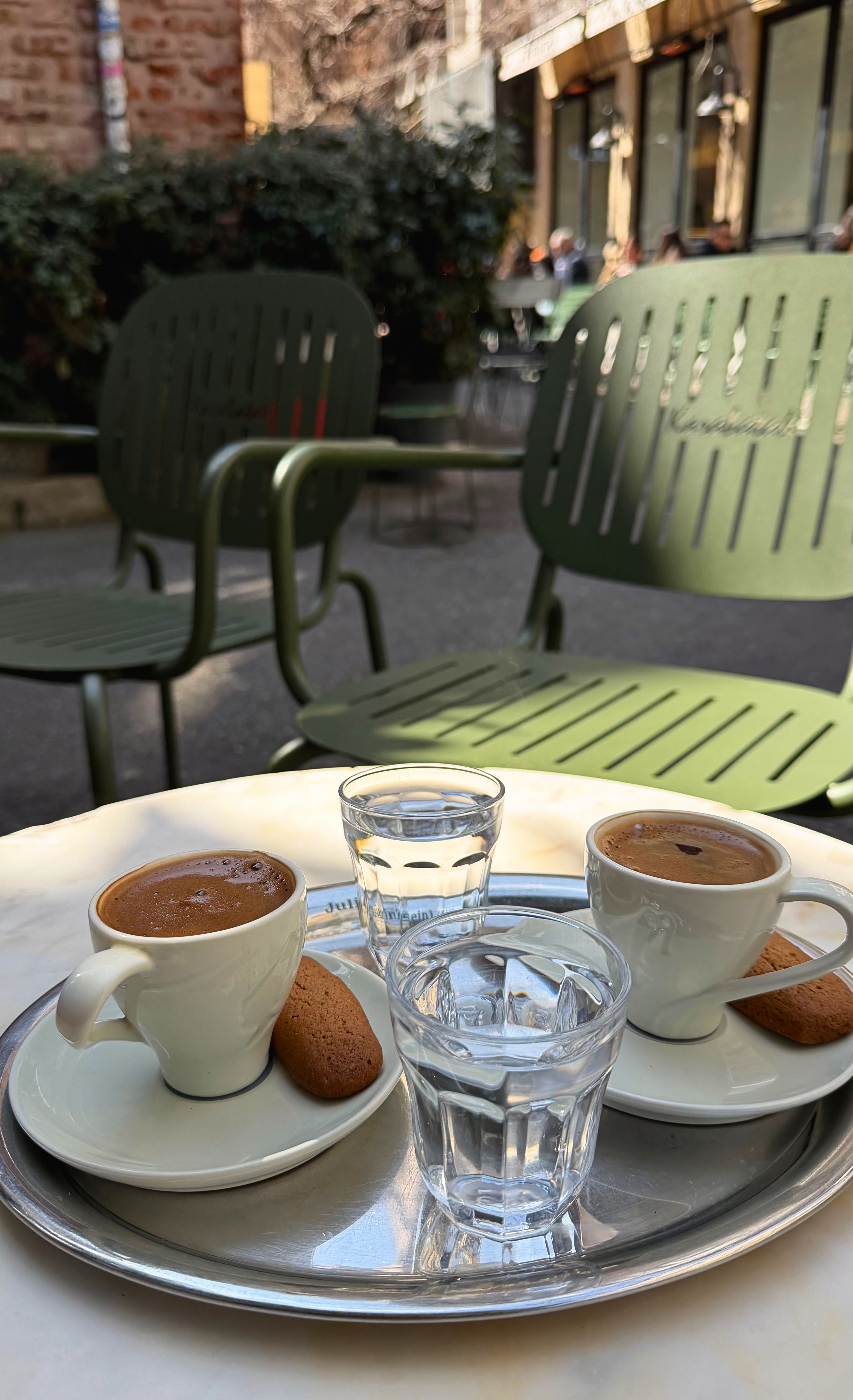 On cost: Istanbul is not a budget destination, and it is worth naming that plainly. A flat white or cappuccino at a well-regarded cafe in Beyoglu typically runs 200-240 Turkish lira, which translates to roughly $4.50-$5.50 USD, and the quality is uneven relative to what that price suggests. For context, a similar drink in Spain or Portugal rarely cost more than $2.50 from neighborhood cafés. Istanbul is a different calculus. Turkish coffee is the more sensible and significantly cheaper option, running 40-90 TRY, or roughly $1-$2, though it takes adjustment if you are not accustomed to unfiltered grounds. Tea is the city's native default, and at a neighborhood tea house you can pay as little as 50-70 TRY, around $1-$1.50, a glass; the same tea at a tourist-facing cafe near a major landmark can run three to four times that. The gap between tourist-adjacent and genuinely local pricing holds across food and drink here. The same meal that costs around $15-$20 near a landmark can often be found for roughly half that a few blocks away.