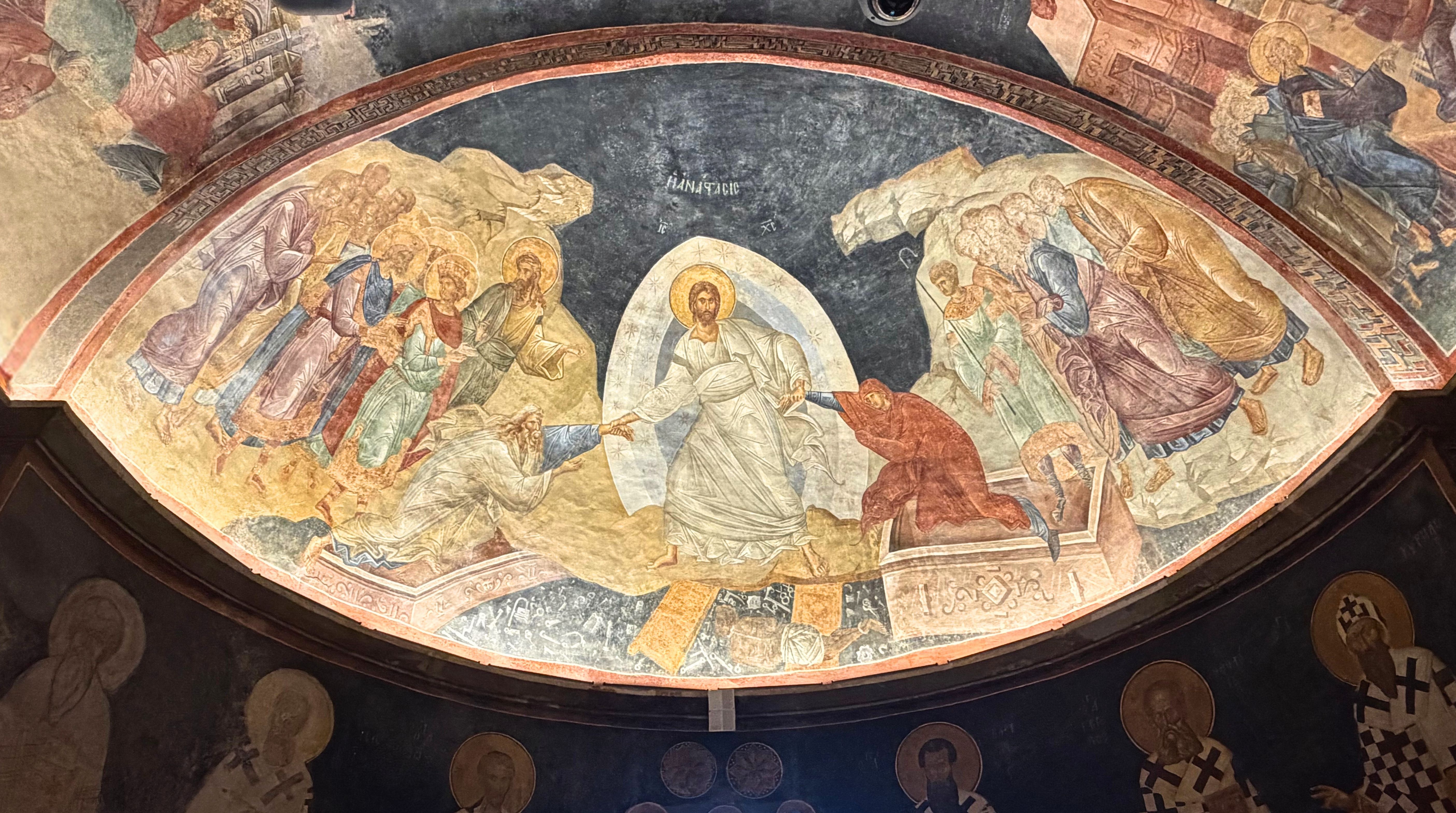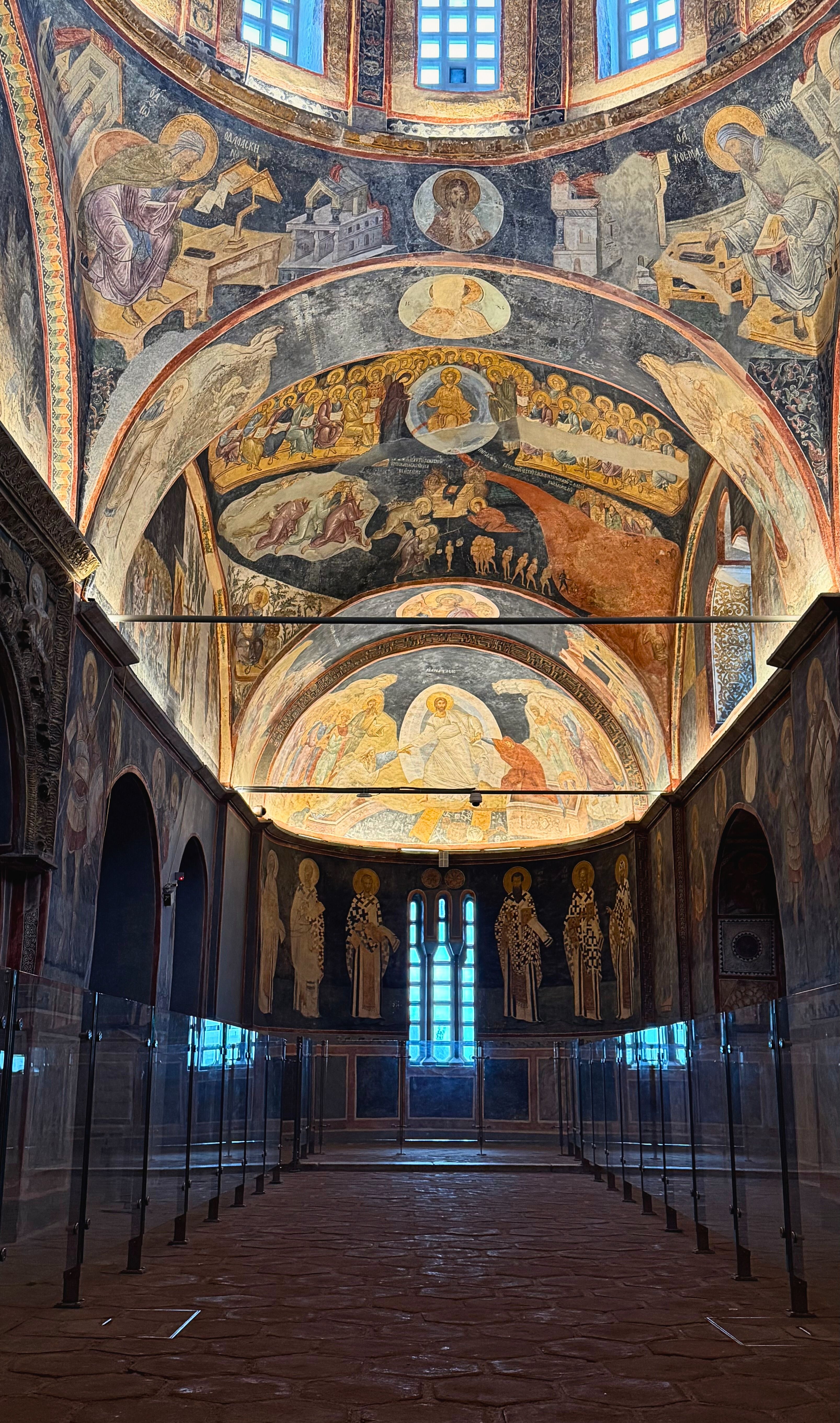 Inside Chora, where the city’s Byzantine Christian inheritance remains visible in fresco and stone.