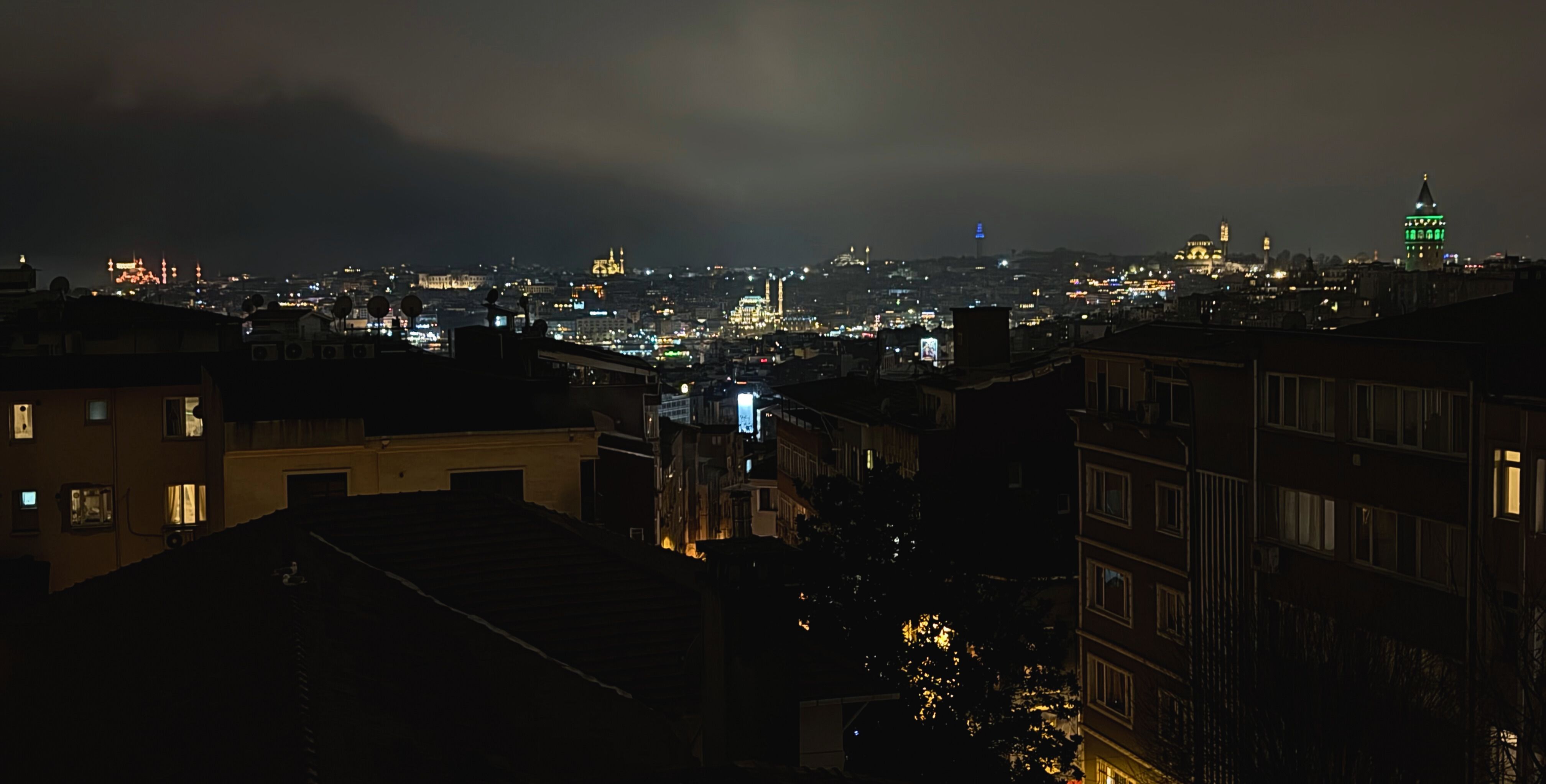 Istanbul at night, where rooftops, towers, mosques, and neighborhoods become one.