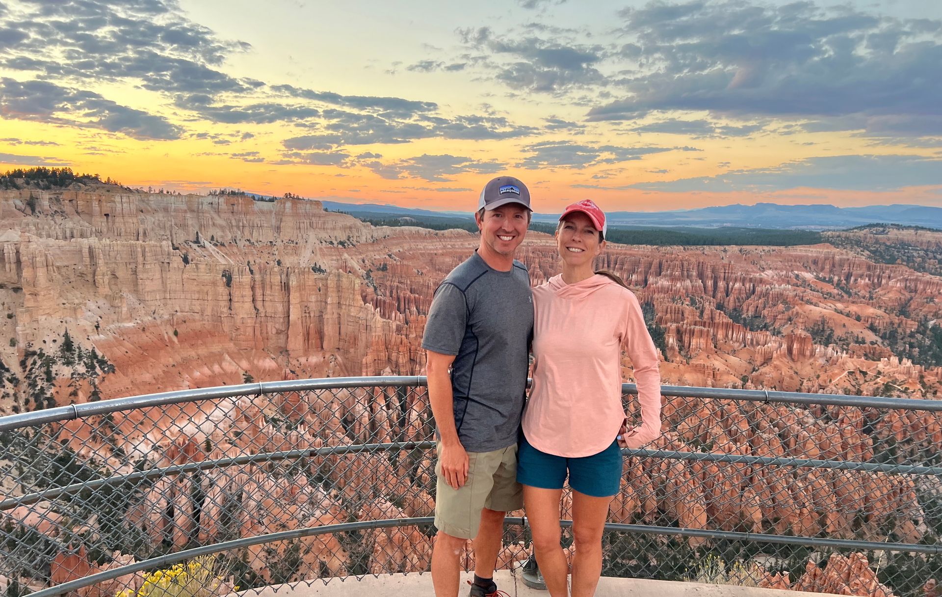 Sunset on the rim at Bryce Canyon with hoodoos in every direction