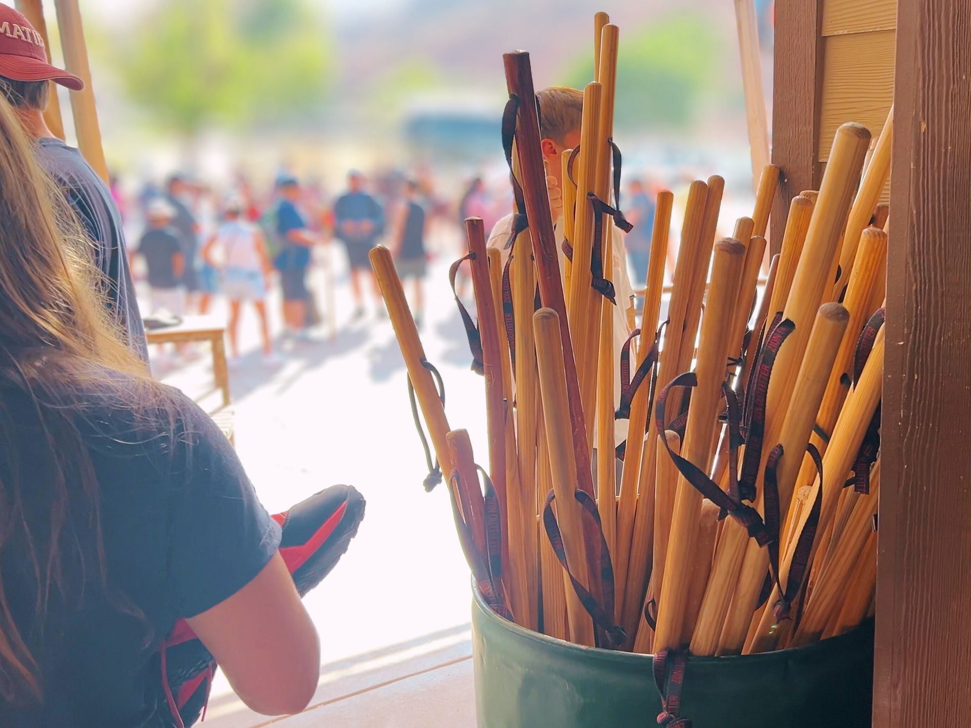 Zion Outfitter charges the same $32/day (warm weather package) whether you pick up at 8 AM or 6 PM the day before. Renting the night before means you skip the morning rush and capture canyon photos when the light is best.
